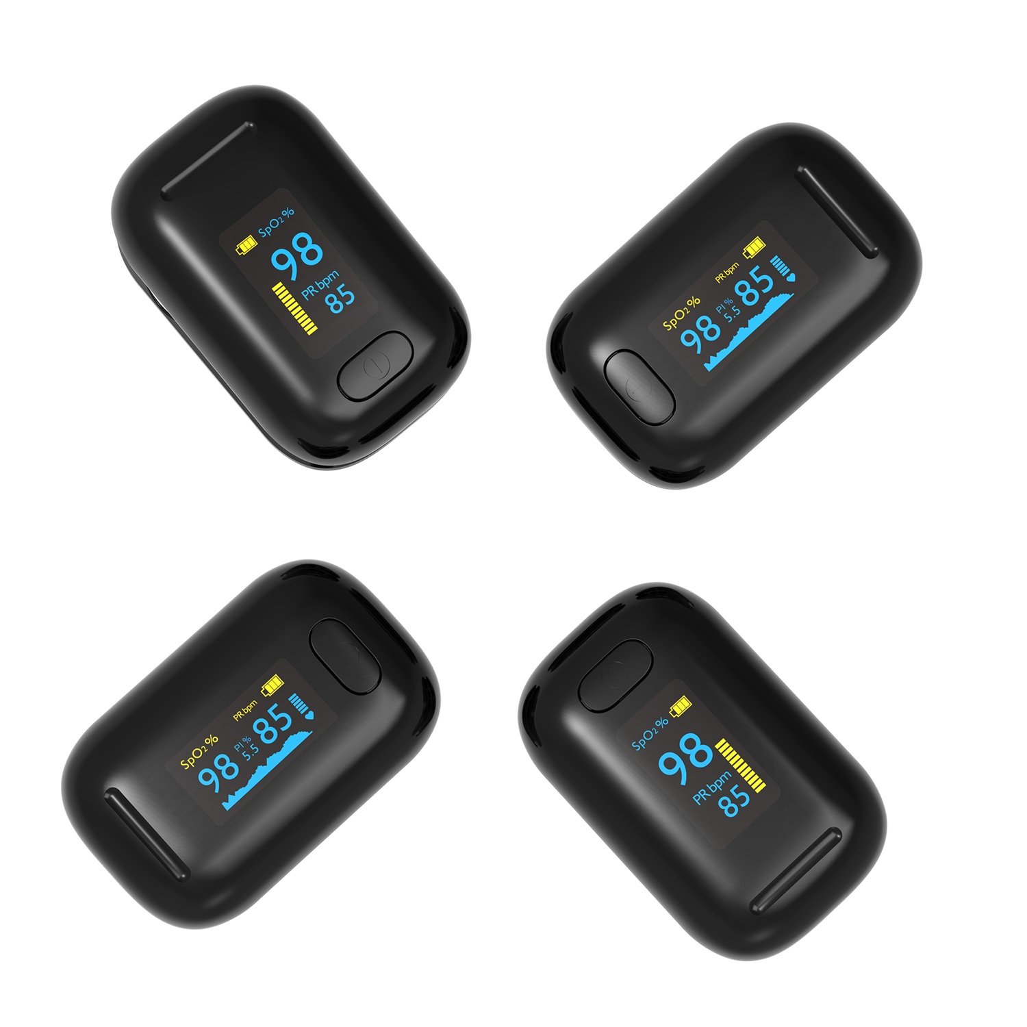 Das Dual-Farb-OLED-Display zeigt SpO₂, Pulsfrequenz und Wellenform aus mehreren Blickwinkeln deutlich an.